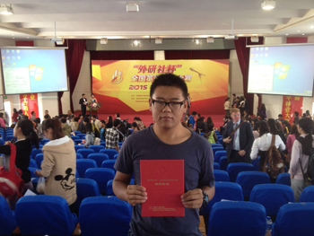 永利官网社会管理学院2013级人力资源管理专业学生廖康总成绩位列写作大赛第一名,获得云南省特等奖。廖康同学将代表云南省参加12月份在北京举行的全国总决赛。这是永利官网学生在“外研社杯”全国英语竞赛中取得的最好成绩。