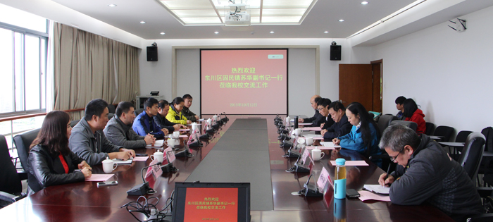 10月12日下午,东川区因民镇党委副书记苏华,因民社区党委书记崔庭贵、副书记杨祖会等领导到永利官网考察交流。学校党委副书记孙勇、党办主任吉庆华、计财处副处长伍雁红、继续教育学院院长陈嘉、基建处副处长莫南明热情接待了来宾。