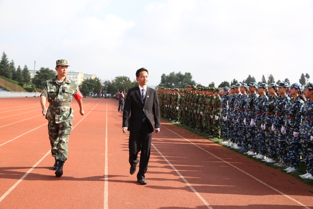 大会在雄壮的国歌声中拉开帷幕。上午9时,全场肃立,迎国旗,行注目礼。何华在赵立志陪同下检阅了2015级学生军训团4590名参训新生组成的受阅方队。受阅方队精神饱满,热情高涨,以严整的军姿、昂扬的精神迎接检阅,随着何校长响亮有力的“同志们好!”、“同志们辛苦了!”的问候,受阅方队“首长好!”、“为人民服务!”嘹亮的口号划破长空,在操场上空此起彼伏,久久回荡。