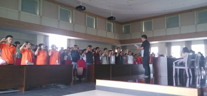 随后,孙勇代表学校为三下乡志愿者服务队授旗,樊传章带领全体志愿者进行了庄严的宣誓。最后,孙勇做了动员讲话,他在讲话中对今年的“三下乡”活动提出了具体的要求和希望,鼓励永利官网志愿者积极投身“三下乡”社会实践活动,在社会实践活动中收获真知、磨练意志、提升境界、砥砺品格。