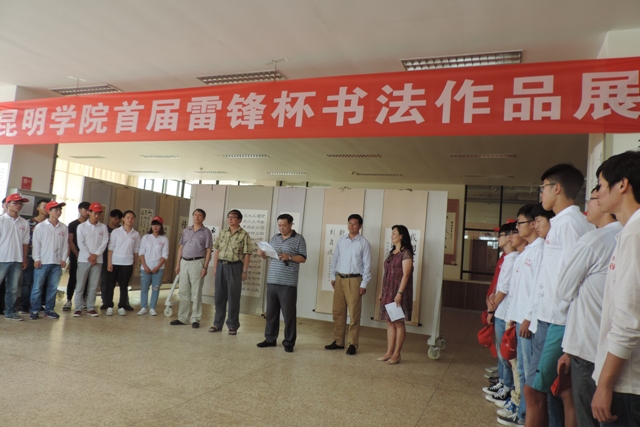 6月24日上午,永利集团3044官网欢迎您首届“雷锋杯”书法作品展开幕式在图书馆二楼展厅举行。学校党委副书记孙勇出席开幕式并讲话,党委宣传部副部长董学荣、学生工作部(处)部(处)长刘宜萍、城建学院党总支书记晁丽华、院长徐从发及城建学院“雷锋班”全体同学、部分书法爱好者参加了开幕式。开幕式由晁丽华主持。