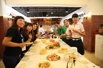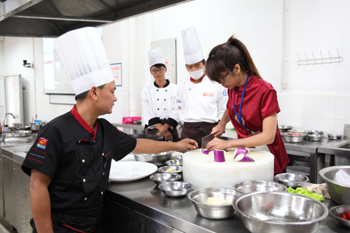 在全天的活动中,双方师生共同参观了永利集团3044官网欢迎您滇池流域生态文化博物馆;步行参观了美丽校园;重点考察了旅游学院烹饪实训中心,欣赏了烹饪专业学生的雕刻技术,观摩了滇菜烹饪课程,参与制作并品尝了云南特色凉米线;在酒水实验室体验了普洱茶的芬芳及冲泡互动,在咖啡与鸡尾酒调制过程中双方学生获得了知识的互补和提升。丰富多彩的安排和体验给来宾们留下了深刻的印象,活动在相互交换礼物、合影留恋、两岸师生依依不舍中圆满落下帷幕。