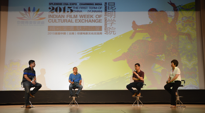 李翔致辞,他首先对印度电影产业做了简单介绍,接着指出,通过南促会本次举办的印度电影文化周活动,能够使学校的老师和同学们欣赏到印度的电影,同时,通过云南话剧院的导演和人文学院影评教师的点评,使大家从电影中了解到印度的文化。讲话结束后,云常浩、永利官网人文学院陆慧云老师、郑云海老师和郭鹏群老师共同在舞台上为现场观众带来印度著名电影《三傻大闹宝莱坞》的精彩讨论,随后播放了该影片。