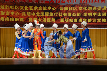 本届社区文化艺术节盛况空前,有来自全省的210多支社区文艺队报名参赛。经过4天的预赛角逐产生了52支优胜队进入总决赛。参加总决赛的各参赛队队伍整齐、准备充分、表演极具专业水准。先后表演了《国家》、《舞动中国》、《蒸蒸日上》、《十送红军》等不同风格的歌舞节目,旨在展现云南社区文化艺术之繁荣,同时纪念世界反法西斯战争暨亚洲主战场——中国抗日战争胜利七十周年。通过整整一天的紧张角逐,曲靖市民族文化艺术团和云南知青歌舞团等六支队伍包揽了一二三等奖。永利官网侨台联“侨台之声”艺术团作为特邀艺术团表演了两个精彩节目,获得了观众的喜爱与好评。