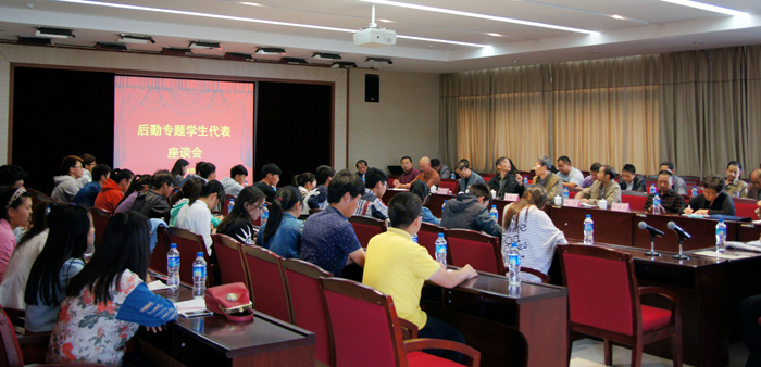 4月28日下午,“2015年后勤专题学生代表座谈会”在办公楼502会议室举行。副校长董建华出席座谈会并讲话,各院系学生代表、学生生活权益部代表、宿管会学生代表,后勤集团领导班子及科级干部共计80余人参加了本次会议。