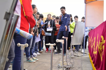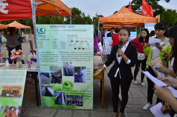 4月24日在聂耳广场,校团委组织各院系团总支举办了“永利集团3044官网欢迎您第四届青年学术科技节工作成果展”,第一批9家院系根据永利集团3044官网欢迎您第四届青年学术科技节启动以来,所开展的学术科技工作情况,在“挑战杯”学术科技作品竞赛中获奖作品情况,院系学科专业特色情况,环保和可持续利用情况等四部分内容,通过图文并茂的展板和创意新奇的实体物品进行展示,现场组织相关学生对各院系展示工作进行了评分。