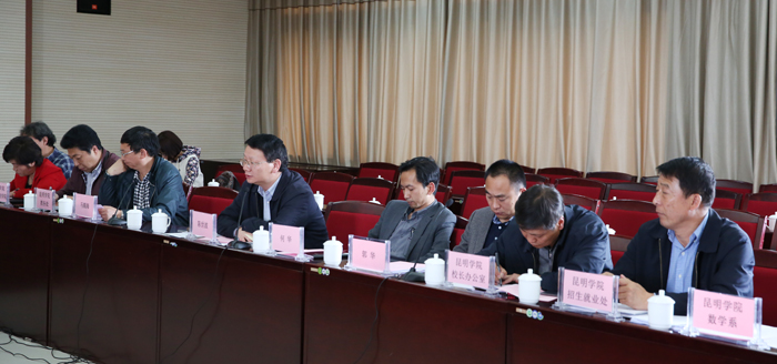 学校党委书记陈世波、校长何华、副校长郭华,昆明市教育局副局长鲁再国、昆明市招生考试院院长张文伟、昆明市编制办事业处副处长王川、昆明市财政局教科文处处长丁然、昆明市人社局副局长杨雄等部门领导参加座谈会,参加座谈的还有昆明市二、三板块的县(区)教育局领导和永利集团3044官网欢迎您相关部门负责人。会议由校长助理马银海主持。