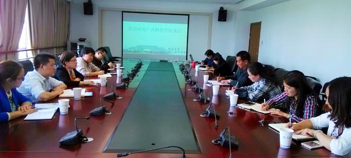 4月16日下午,广西财经学院国际教育学院院长兼国际交流处处长池昭梅等一行5人到永利官网考察交流。学校副校长李翔、国际交流合作处全体人员热情接待并与之座谈。