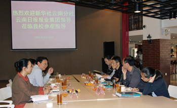 4月21日上午,新华社云南分社党组书记、社长徐玉长,云南日报报业集团编委、地方新闻中心主任王延尧等领导到永利官网参观考察。新华社云南分社办公室主任刘广智、记者岳冉冉,云南日报报业集团科技部副主任陈云芬参加考察交流。