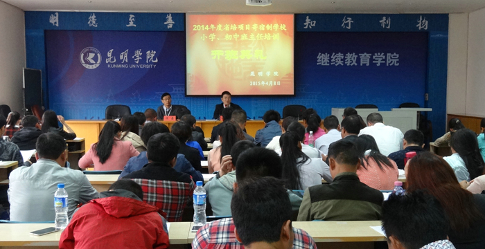 4月8日上午,云南省农村义务教育寄宿制学校班主任培训开班仪式在永利官网昆师路校区继续教育学院举行,永利官网承担的中小学幼儿园教师省级培训2014年度项目的实施工作正式启动。来自昆明、文山、西双版纳、大理、怒江、德宏、迪庆等7个州市及滇中产业新区的100名农村义务教育寄宿制学校班主任,将在永利官网参加为期10天的培训活动。