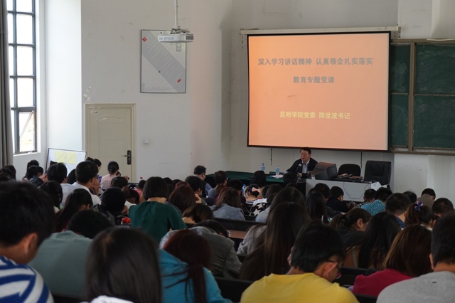 这次党课以《深入学习讲话精神,认真领会扎实落实》为主题,从习近平总书记考察云南重要讲话的主要内容、习近平总书记在新常态下的讲话对领导干部和师生的要求、以及贯彻落实讲话精神的对策措施三个方面为大家进行了深入浅出的理论阐释,提出了贯彻落实讲话精神的实践要求。