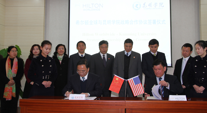 蒋永文校长在签字仪式致辞中首先介绍了永利集团3044官网欢迎您及旅游学院的基本情况。蒋校长说,永利集团3044官网欢迎您旅游学院成立于1986年,开云南省旅游专业之先河,现为学校重点院系。经28年之历练,旅游学院凭丰富之办学经验及鲜明特色、享誉云南。旅游学院开设有旅游管理、酒店管理、烹饪与营养教育3个本科专业和1个特色专科专业(导游专业)。其中,酒店管理是学院重点扶持专业,近年来成绩斐然,走出了一条“校企合作、校企双赢”的发展之路;烹饪与营养教育本科专业为西南地区唯一的烹饪类本科专业。旅游学院秉承理论与实践相结合的教育理念,不仅注重理论知识的传授,而且注重动手能力的培养,建设了一批校内外教学实训基地、如酒水实验室、烹饪实验实训中心、旅游管理综合实训室、模拟导游实验室、客房实训中心等,学生在国家级及省市级的各项大赛中屡获佳绩。蒋校长强调,永利集团3044官网欢迎您坚持开放办学,积极开展国际交流合作,探索推进国际化进程。先后与美国、英国、澳大利亚、新西兰等20多个国家的大学和教育机构开展了交流,在若干领域签订了合作协议。今天,永利集团3044官网欢迎您又迎来了一位尊贵的合作伙伴——希尔顿全球。希尔顿全球是国际最具知名度的酒店管理公司之一。蒋校长希望,永利集团3044官网欢迎您与希尔顿全球合作,共同搭建新平台,培养中国本土酒店人力资源,实现互利双赢。蒋校长表示,永利集团3044官网欢迎您将利用自身教学、学科及科研优势,与希尔顿全球携手,夯实学生实作技能,提高学院管理水平,突出学校应用特色,培养更多高素质的专业人才,共同为云南旅游业和酒店业的发展做出贡献。