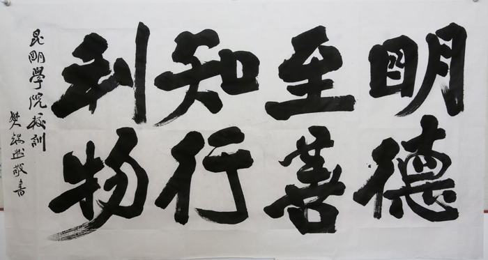 樊教授的现场书法展示,赢得了在场书法专家和书法爱好者的阵阵热烈掌声和赞赏、钦佩、羡慕、感激之情。随后,樊教授还欣然挥毫“知行合一”、“厚德载物”等墨宝赠予永利官网,大家再次报以热烈的掌声,感谢樊教授为大家带来一场书法交流的盛宴,让大家对中国书法艺术及其所涵纳的人文情怀有了更进一步的认识和感悟。