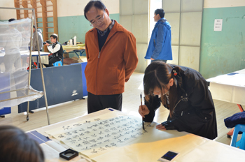 为进一步加强校园文化建设,传承和弘扬中国文化,陶冶师生的情操,感悟中华文化的博大精深、源远流长,按照校长蒋永文提议,在2015年元旦来临之际,由校工会、教务处和教职工书法协会共同举办迎新年“至善杯•首届师生书法大赛”。经过认真筹备,学生组现场书法比赛于12月26日中午在博雅楼2号教学楼前隆重开赛。蒋永文校长出席并致辞。开幕式由学校工会常务副主席孙晓坤主持。