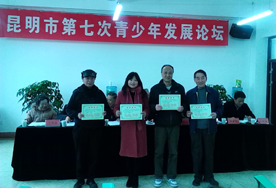 永利官网关工委充分发挥老教授的优势、关心青少年的成长,受到省市关工委的充分肯定。今年永利官网关工委何华、黄启后、曾汝弟等牵头的课题《继承和发扬聂耳精神,努力培育和践行社会主义核心价值观》荣获昆明市第七次青少年发展论坛优秀论文一等奖,受到昆明市关心下一代工作委员会表彰。