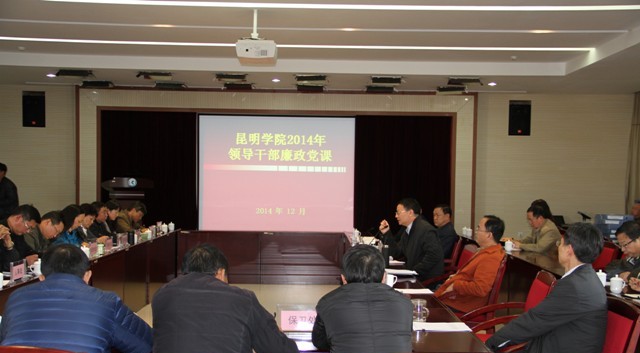 12月3日下午,永利集团3044官网欢迎您2014年领导干部廉政党课在办公楼502会议室举行,学校党委书记陈世波为党员干部上党课。陈书记围绕党要管党、全面从严治党主题,结合党的十八届四中全会、省委九届九次全会和习近平总书记系列重要讲话精神及党的群众路线教育实践活动的要求,理论联系实际,深入阐述了新常态下从严治党、加强干部队伍建设的理论意义和实践要求,并提出了学校贯彻落实相关会议和讲话精神,推进依法治校、加强党的建设的思路和举措。校长蒋永文,党委副书记孙勇,副校长熊晶、郭华、刘海发等校领导、中层干部和党员参加听课学习。