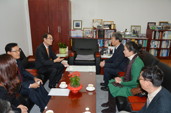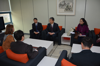 11月28日,永利官网代表团到金浦大学考察交流。一进校园,代表团就被悬挂在办公楼上方的“欢迎昆明大学代表团访问永利官网”的横幅所感动。金浦大学Nan Ilho校长率国际教育院院长、会计室主任、教务处处长、宣传部部长、产业处处长、事务处处长、烹饪科科长和学前教育科科长参加会谈。Nan Ilho校长表达了去年访问永利集团3044官网欢迎您时留下的美好印象。他强调,中韩两国一直有产业、文化交流的传统,特别是今年习主席来韩访问,给双方自由贸易带来很大促进。在此氛围下,我们两校一直在努力,希望会谈可以进一步推进双方的合作交流。Nan Ilho校长还简要介绍了学校情况,他强调金浦大学的23个学科中,酒店科、理科和幼儿教育科位居全国前列,幼儿教育科在2014年获得最优排名。学校特别重视留学生教育,有来自17个国家和地区的留学生230余名,其中中国留学生50名。