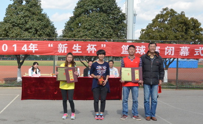 当天闭幕式在音乐学院学生会精心准备的啦啦操中正式开始,校团委副书记魏妮娅致闭幕词,魏老师充分肯定校学生会对本次比赛的组织和付出,并对获奖院系及运动员表示衷心祝贺,向全体工作人员和裁判员表示衷心的感谢。她表示,本届篮球赛参与面广、实践性强,学校将继续发扬本次比赛的精神风貌,让更多同学以强健的体魄和饱满的精神状态去迎接学习、工作中的挑战。而后,体育学院院长及总裁判长赵平宣读本届“新生杯”篮球赛的获奖名单,现场嘉宾为获奖代表颁发了荣誉证书和奖杯,并合影留念。最后,由学校学生处处长刘宜萍宣布闭幕。至此,2014年“新生杯”篮球赛圆满落幕。