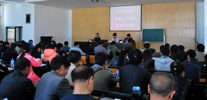 11月20日下午,举办了昆明市基层残疾人工作者业务培训班开班典礼。开班典礼由市残联教就处副处长李占青主持,市残联党总支书记罗涛、教师教育学院副院长李里以及120名昆明市基层残疾人工作者参加了此次开班典礼。