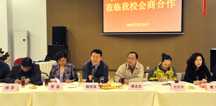 蒋永文校长最后作总结讲话。蒋校长首先对来宾到校考察商谈合作事宜表示欢迎。蒋校长强调,利用学校优势平台,积极开展校地合作,更好地支持和服务好地方经济建设发展是学校的重要工作。校地合作,其目的是合作要有实实在在的效果,有了起色、有了实效,合作才能持续发展、合作才能实实在在服务好地方经济建设发展。蒋校长希望双边合作做好以下方面:一、双方要构建一个合作、互动、沟通平台;二、找准双方的合作需求,找准合作项目的切入点、突破点,发挥双方优势,做到取长补短,促进双边发展;三、双方合作,要有专人负责,要认真做好合作项目的考察及各项准备工作,为双边合作开好头起好步。