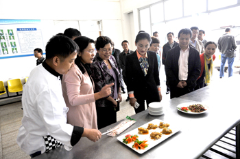 永利官网党委书记陈世波、校长蒋永文、副校长熊晶热情接待了富民县领导班子一行。熊副校长通过校园模型沙盘,向来宾介绍了学校的建设发展情况。并陪同来宾参观了综合体育馆、烹饪实验室、滇池流域生态文化博物馆、轨道交通实验室、化学系、农学院、酒水实验室。