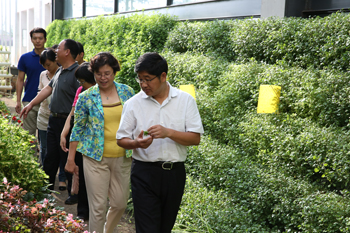 交流座谈前,陆平书记一行在熊晶副校长的陪同下,认真地参观了校园建设和专业实验室。来到校园建设规划沙盘前,熊晶副校长介绍了校园建筑建设布局、设计理念、校园水系生态建设和各建筑设施功能等情况。在相关实验室负责人的介绍下,陆书记一行还参观了证券投资仿真实验室、国际贸易综合实验室、财务ERP综合模拟实验室、金蝶ERP工商管理实验室、烹饪与营养实验室、旅游酒水实验室、城市轨道交通运营技术实验室、3D仿真打印实验室、污水净化系统、人体生命科学馆、ICU中心、特色植物科技种植展示温室等专业教学设施和场馆。每到一处,陆书记均围绕如何利用、发挥高校优势,促进当地经济社会发展等问题对设备的功能、效益等情况作了详细咨询和了解。