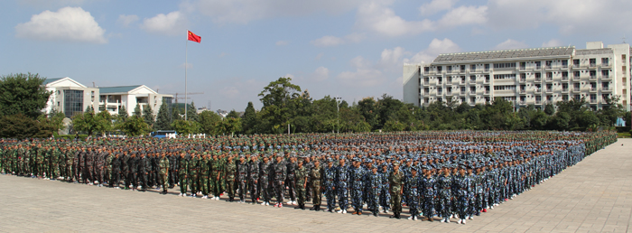 9月8日上午,永利官网在聂耳广场举行2014级学生军训动员大会。武警边防部队士官学校训练部李荣部长及相关职能部门的领导,经开区消防大队张海峰中校,永利官网郭华副校长及相关职能部门的领导、各院系领导、带队辅导员、全体承训官兵和2014级4797名参训同学参加了动员大会。
