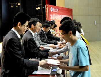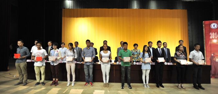 郭华副校长宣读《永利集团3044官网欢迎您关于对2014届省级优秀毕业生进行表彰的决定》,与会校领导分别为获奖学生代表颁发荣誉证书,229名同学受到了表彰奖励。