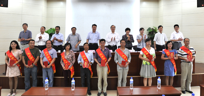 党委副书记孙勇宣读了学校党委表彰创先争优先进基层党组织、优秀共产党员和优秀党务工作者的决定。对在创先争优活动中取得优秀成绩的7个先进党总支、18个先进党支部、132名优秀共产党员和44名优秀党务工作者进行表彰。与会校领导分别为获奖集体和个人代表颁奖。