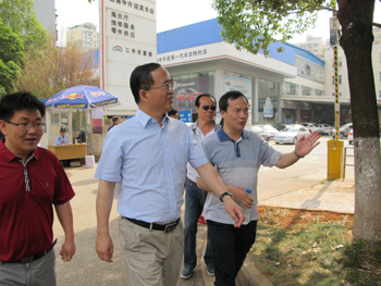 蒋永文校长一行分别对西园路五华区路段和西山区路段进行了实地巡查,他对西园路整体的环境卫生、城市绿化、交通秩序,以及相关管理部门所做的工作和努力给予了充分的赞同,并对巡查过程中发现的小广告、占到停车、占道经营、河道垃圾处理、建筑工地的管理等问题提出了改进意见。蒋永文校长强调,南博会召开在即,是昆明市打造城市品牌,提升城市品质的重要机遇。卫生保洁、道路交通是树立良好的城市形象重中之重,管理部门不但要重视,还要做好宣传教育工作,使每个城市卫生的参与者都认识开展“城乡清洁工程•清洁城市行动”的重要意义,养成良好的行为习惯,为建设美丽的春城做出自己的贡献。