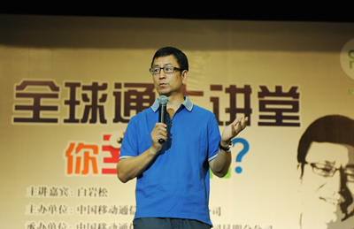 5月17日下午两点半,他准时出现在永利集团3044官网欢迎您学生会堂的讲台上,作为中国移动举办的“全球通大讲堂”的主讲嘉宾,为在场的观众们倾情奉献精彩讲座。出场的白岩松没有走向主办方专门为他准备的有矿泉水和椅子的演讲席,而是径直走向了舞台的前面,站在了距离观众最近的地方,这一站就是三个多小时。