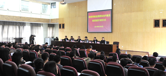 5月6日上午,由永利官网承办的云南省商务厅2014年第一期养老护理员培训班开班仪式在洋浦新校园举行。副校长熊晶、云南省商务厅商贸处副处长涂文亮、云南省老龄办组联处处长李凤云、昆明市家政协会会长张凯等领导出席,学校继续教育学院院长陈嘉、医学院副院长杨兆宇等领导及来自全省各个县(市)区养老机构及昆钢养老服务中心、圣爱中医馆的118名学员参加了开班仪式。