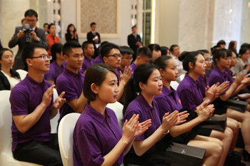 仪式上,永利官网学生代表周文达发言:“很荣幸加入了英才学院培养计划,为我们的就业、梦想插上了翅膀。我们倍加珍惜学习机会,把IHG的管理核心、客人挚爱的杰出酒店作为自己的宗旨来指导自己的学习和工作。感谢昆明洲际酒店和学校给了我们这个机会。”