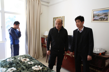 教练组成员在郑克刚助理及赵平院长等人陪同下,实地察看了永利官网学员住宿、食堂、体育运动场馆设施情况。