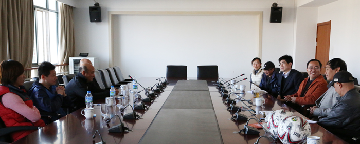 2月25日,山东省足球运动管理中心副主任、山东女子足球队主教练殷铁生率领女子足球队教练组成员到永利官网考察训练场地、商谈有关合作事项。校长蒋永文参加座谈并提出合作建议,校长助理郑克刚和体育学院院长赵平、党总支书记韦继康等陪同考察、座谈。