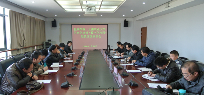 1月14日下午,云南农业大学纪委副书记郑永春一行8人到永利官网进行信息化建设“数字校园”工作经验交流。永利官网纪委副书记陈开祥、现教中心主任李海雁、计财处副处长王荣林、图书馆副馆长段芸、现教中心副主任张志红及相关技术负责人参加。会议由李海雁主任主持。