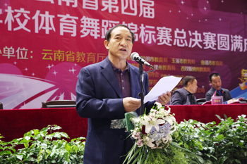 云南省教育厅副厅长罗嘉福致开幕辞,并宣布“云南省第四届学校体育舞蹈锦标赛”总决赛开幕。罗副厅长强调,党和国家、省委省政府历来高度重视青少年健康成长,把加强青少年体育工作作为提高全民健康素质和综合国力的国家战略,深入推进学校体育事业不断发展。各地各校要牢固树立“健康第一”的思想,把增强学生体质作为学校教育的重要目标之一,作为全面提高人才培养质量的重要内容。罗副厅长指出,举办体育舞蹈大赛是对学校体育工作和素质教育工作的一次综合性检阅。体育舞蹈不仅可以增强学生的体质,还可提高学生的综合素质,使学生的气质、姿态、动作更加优美,同时也促进学生对美的感受、美的理解和美的追求,提高学生的形体美、运动美,以及美的创造能力,从而全面推进素质教育。