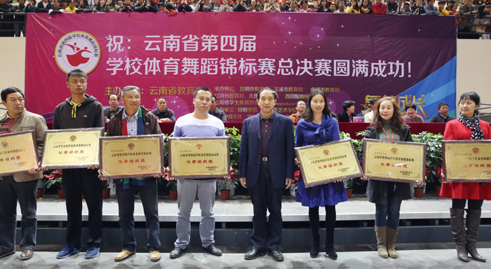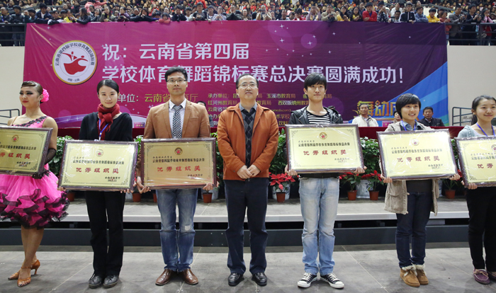 开幕式上,还举行了“云南省第四届学校体育舞蹈锦标赛”优秀组织奖颁奖仪式。罗嘉福副厅长分别为“教育局优秀组织奖”获得者颁奖,他们是昆明市教育局、玉溪市教育局、大理州教育局、红河州教育局、曲靖市教育局西双版纳州教育局、文山州教育局6个单位。蒋永文校长分别为“大学院校优秀组织奖”获得者颁奖,他们是永利集团3044官网欢迎您、云南大学、西南林业大学、云南财经大学、云南师范大学和云南师范大学附属中学。