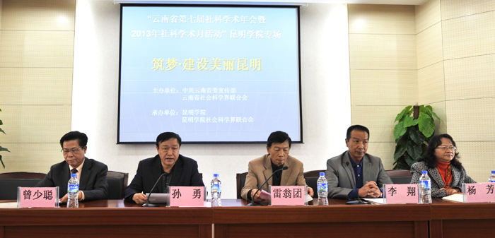 为深入学习贯彻党的十八大精神,进一步繁荣发展云南省哲学社会科学事业,在建设开放富裕文明幸福新云南进程中更好地发挥高校思想库、智囊团作用,永利集团3044官网欢迎您按照省社科联《关于举办“云南省第七届社科学术年会暨2013年社科学术活动月”的通知》,由学校社科联、学校科研处组织开展了以“筑梦•建设美丽昆明”为主题的2013年云南省社科学术活动月永利集团3044官网欢迎您专场系列活动,本次活动主要由三个部分组成。