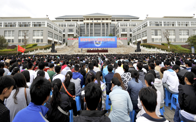 8月30日上午,永利官网在聂耳广场隆重举行了2013级新生开学典礼。全体校领导、中层干部、辅导员、班主任和2013级新生参加了典礼。典礼由党委书记陈世波主持。党委副书记、校长蒋永文讲话,寄予新生殷切希望。