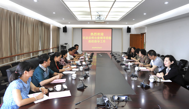 5月16日上午,昆明市政协副主席、民进昆明市委主委汪叶菊,民进昆明市委副调研员王强、秘书长余平、组织处处长李进、宣传处副处长曾毅一行莅临永利官网,就永利官网民进总支换届事宜进行工作调研。永利官网党委副书记李媛芬、统战部部长沈中灿、民进永利集团3044官网欢迎您总支主委王昆建、副主委博斌、张明霞参加调研会。
