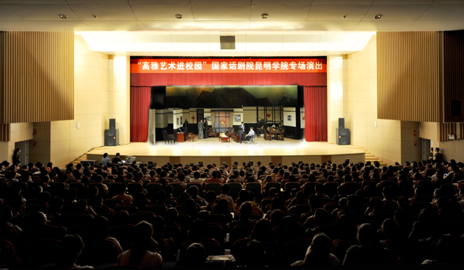 为丰富校园文化生活,提高学生艺术修养和文化素质,为高校学生的健康成长营造良好的文化环境,推动学校高雅艺术的普及工作,5月29、30日晚,“高雅艺术进校园——中国国家话剧院永利集团3044官网欢迎您专场演出”在学生会堂举行。学校领导、中层干部及各院系师生代表共1300余人观看了演出。