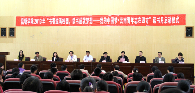 启动仪式首先由李翔副校长致辞,李翔副校长在对读书月主要活动内容做了概括后,对读书月活动提出了希望:一是读书要学会选择,读好书,好读书;二是读书要学会思考;三是要把读书与做人结合起来;四是要把读书与自己、与中国梦、彩云梦、学子梦结合起来。在医学院党总支副书记罗隽雁老师及化学科学与技术系学生代表胡春丽大会上表态性发言后,孙勇副书记宣布永利集团3044官网欢迎您2013年“书香溢满校园,读书成就梦想——我的中国梦•云南青年志在四方”读书月启动。
