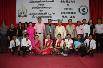 此次出访的主要目的,是落实今年2月陈书记率团访问老挝国立大学期间,与对方商谈的联合建立音体美专业的合作项目。经学校党政领导批准,由音乐、体育、美艺三个学院的党政领导和专业教师组成的代表团一行十人赴老挝国立大学。访问期间,体育学院赵平院长、周明副院长、音乐学院靳丽芬院长和美艺学院武新文院长、李正红副书记与老挝国立大学校方和老挝国立大学教育学院领导多次深入会谈和调研,全面细致了解了对方学校在音体美专业建设方面的现状和需求。在双方联合举办的“老挝国立大学•永利集团3044官网欢迎您文化交流展示会”上,靳院长的独唱、武院长的现场书法展示、周砚馨老师的小提琴演奏,以及徐立宏老师表演的八卦剑和太极拳等赢得老挝国立大学师生的阵阵掌声和喝彩。文化交流展示结束后,国立大学领导和师生兴致勃勃地观看了美艺学院精心选送的师生美术与艺术设计作品展。此外,体育学院周副院长和徐立宏老师还为体育专业的师生上了四堂示范课,深得师生好评。永利官网音体美三个学院均向对方赠送了礼品和部分器材。