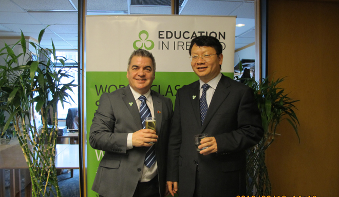 新闻发布会前,爱尔兰国家学院副校长Jimmy Hill先生,国际部负责人Nicola Carroll女士和中国区经理Lisa女士与陈书记一行见面并会谈,上海凤楼国际有限公司董事长唐凤楼先生陪同参加了见面和会谈。新闻发布会上,爱尔兰教育部部长Ruairi Quinn T. D. 先生,爱尔兰驻上海总领事Austin先生和前任中国驻爱尔兰大使沙博士分别致辞。此次发布会主要是为了加强爱尔兰和中国高校之间的联系并寻求机会建立教育合作伙伴关系,同时介绍爱尔兰的文化和教育情况,希望有更多的中国学生认识、了解爱尔兰。