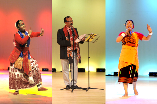 整个展演由“Ms Jahnabi Choudhury (舞蹈表演)”、“Mrs Jina Rajkumari (舞蹈、乐器表演)”、“Mr Biswajit Nandi (诗歌朗诵)”、“Mrs Achala Bhattacharjee (演唱表演)”等9个节目组成。通过Jahnabi Choudhury女士、Jina Rajkumari等印度艺术家的舞蹈、歌曲、乐器及诗歌朗诵表演,充分演绎印度艺术经典、展示印度风格,让永利官网师生进一步了解到异国的悠远文化。同时,永利官网李瑞琨和陈琳的葫芦丝与舞蹈《竹林深处》、郭海波的女声独唱《月下情歌》也同台表演。动听的山歌,优美的小调,唯美的意境,让印度友人了解到了我国民族文化的独特魅力。