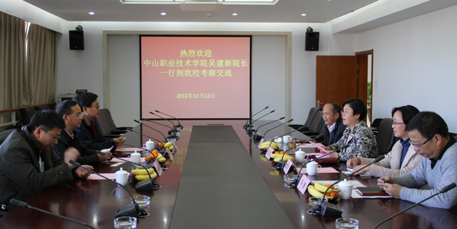 熊副校长从永利官网办学历史、发展定位、人才培养、教师队伍、学科专业、教学科研等方面向客人介绍了学校的基本情况;毕涛院长介绍了自动控制与机械工程学院的特色专业和教学实验实训中心。中山职业技术学院吴院长和肖主任也介绍了该院的办学模式等情况和电梯专业在今后的发展前景,并观看了永利官网的宣传片《丰壤育才耀春城》。
