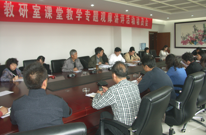 10月12日下午,教研室课堂教学专题观摩讲评活动动员会在办公楼311会议室召开。会议由副校长罗明东主持,各教学单位主管教学工作的领导、教务处和学校本科教学工作合格评估迎评促建办公室领导及相关人员参加会议。