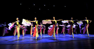 辽宁芭蕾舞团此次来昆的70余位演员为永利官网师生呈现了一场品味高雅、美轮美奂的芭蕾盛宴。演出在唯美浪漫的经典芭蕾舞剧《仙女》中盛妆启幕,演员们用精湛的舞技精彩演绎了中外芭蕾舞的经典与现代之作。现代男子群舞《男人》阳刚雄武、活力四射;古典芭蕾舞剧《海盗》生动唯美、激情奔放;现代女子群舞《茉莉花》优雅曼妙、赏心悦目;精选节目《芭蕾集锦》节奏明快、酣畅淋漓;情景芭蕾《江山美人》如歌如泣、激昂悲壮;现代二人舞《无欲无虑》动感协调、引人入胜;世界经典舞剧《天鹅湖》双人舞揭示了对生命,对爱情的无限憧憬;而中国芭蕾舞剧《二泉映月》中的经典桥段《梦中追月》成功的将听觉向视觉转化,实现了一次文化层面上的中西合璧,美不胜收、感人肺腑。整台演出精彩纷呈、高潮迭起,赢得了全场师生经久不息的热烈掌声。最后,演出在辽宁芭蕾舞团全体演员带来的原创作品《芭蕾风采》中徐徐落下帷幕。演出结束后,陈世波书记还亲切地与演员们合影留念。