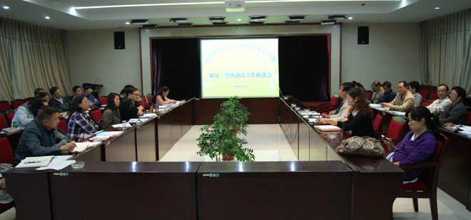 会议首先由教务处沈凡处长就永利官网教风建设的相关情况作发言,沈处长结合教育部印发的《高等学校教师职业道德规范》及普通高校本科教学工作合格评估的相关指标体系,对加强永利官网教风建设的重要性、紧迫性作了深入分析,从几个方面列举了永利官网教风建设的现状。最后沈处长从教务处的角度,提出了开展教风建设工作重点要解决的问题和加强教风建设的主要措施。重点要解决的问题是:1.加强师德修养、模范遵守教师职业道德规范;2、加强制度建设,规范教师社会兼职和校外活动,促使教师把主要精力投入到教学工作中;3.提高教师的业务素质;4.建立教风建设的保障机制和长效机制。加强教风建设的主要措施是:1.加强对教风建设的领导;2.在师资队伍建设工作中突出优良教风建设;3.完善规章制度,引导教师树立优良教风;4.加大教学过程监控和教学质量管理的力度,促进优良考风的建设;5、完善教师教学工作评价体系,加大奖惩力度;6.大力营造建设优良教风促学风的良好氛围。